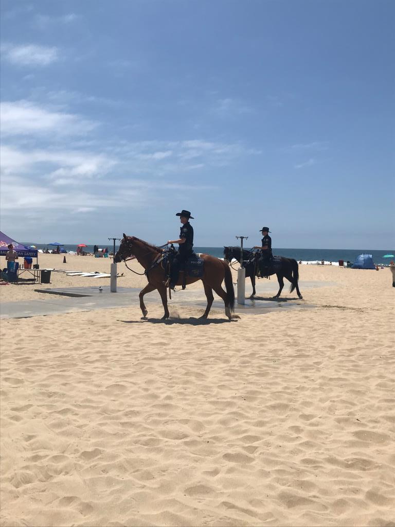 Our horses offer increased visibility (both for the public to see our officers, and for officers to see their surroundings from a higher vantage point). Mounted officers are much more effective in crowd control situations than a police officer on foot. Horses can also maneuver more easily than vehicles, and can travel across different types of terrain (such as sand, concrete, asphalt, stairs, and even the piers) without the officer having to dismount.